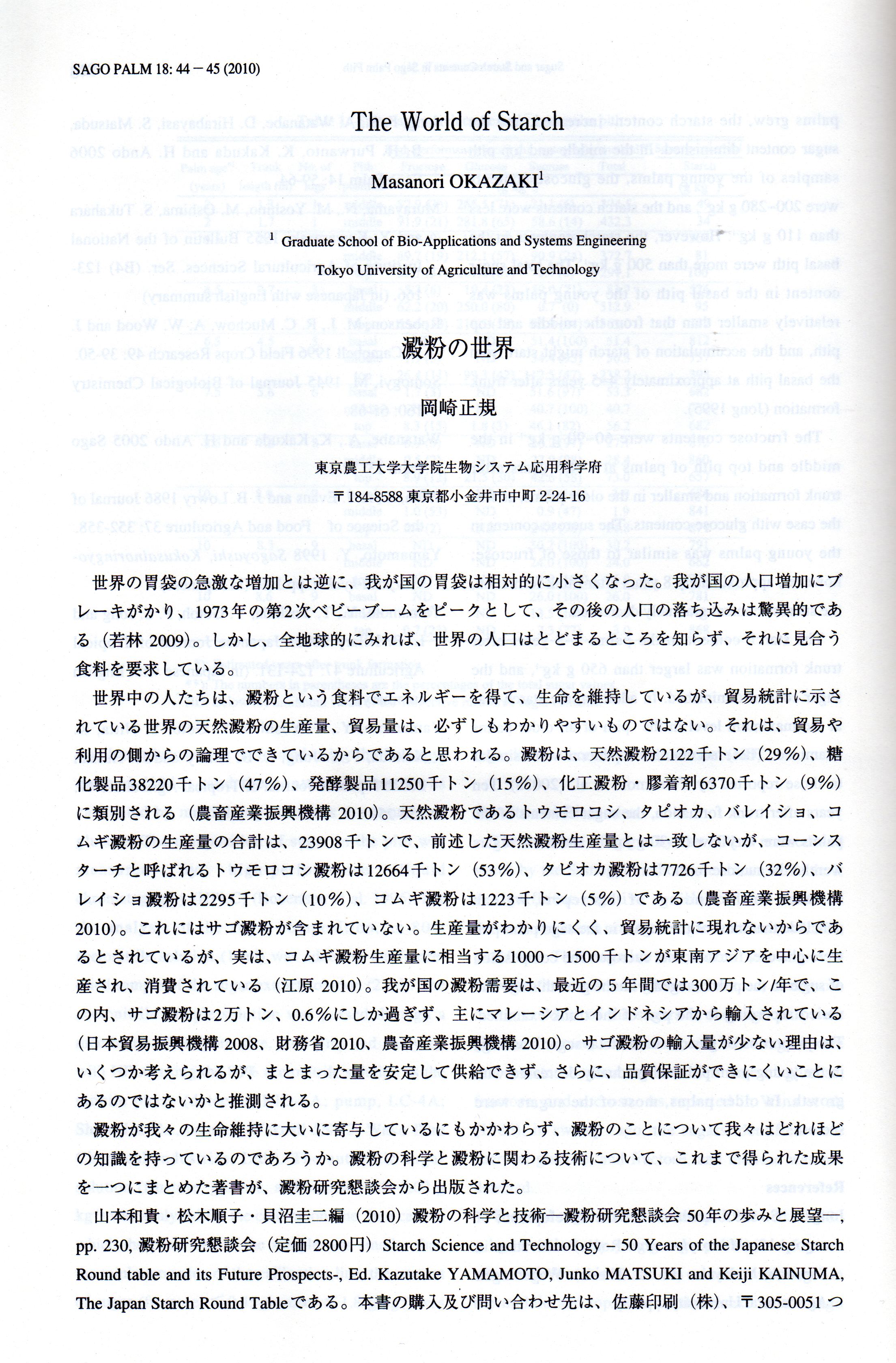 ◆ジャーナルSAGOPALMに掲載されました澱粉の科学と技術(澱粉研究懇談会)